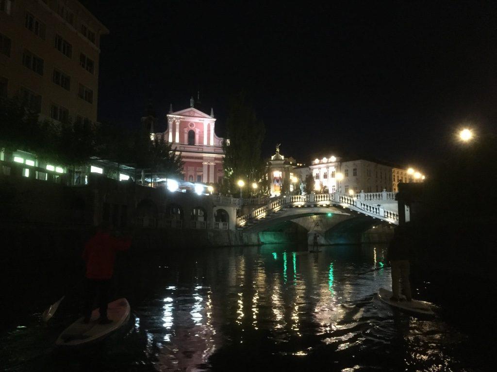 We reach Ljubljana in late afternoon which gives us some time to refresh at the hotel and check out the lively scene in the streets of the Old Town – before we take off for the night sup. As the night starts to fall we are back at the waterfront, this time at our club just around the corner from the Old Town. The river is almost still and glassy, letting the city lights magically spill over its surface. At this hour the boat-traffic on the river is ending for the day so we are alone on the river, enjoying the privileged views of the Old Town from a new perspective. As our guests decide to have the rest of the evening for themselves we drop Alan and Mike in the city centre and pull their boards back to the club.